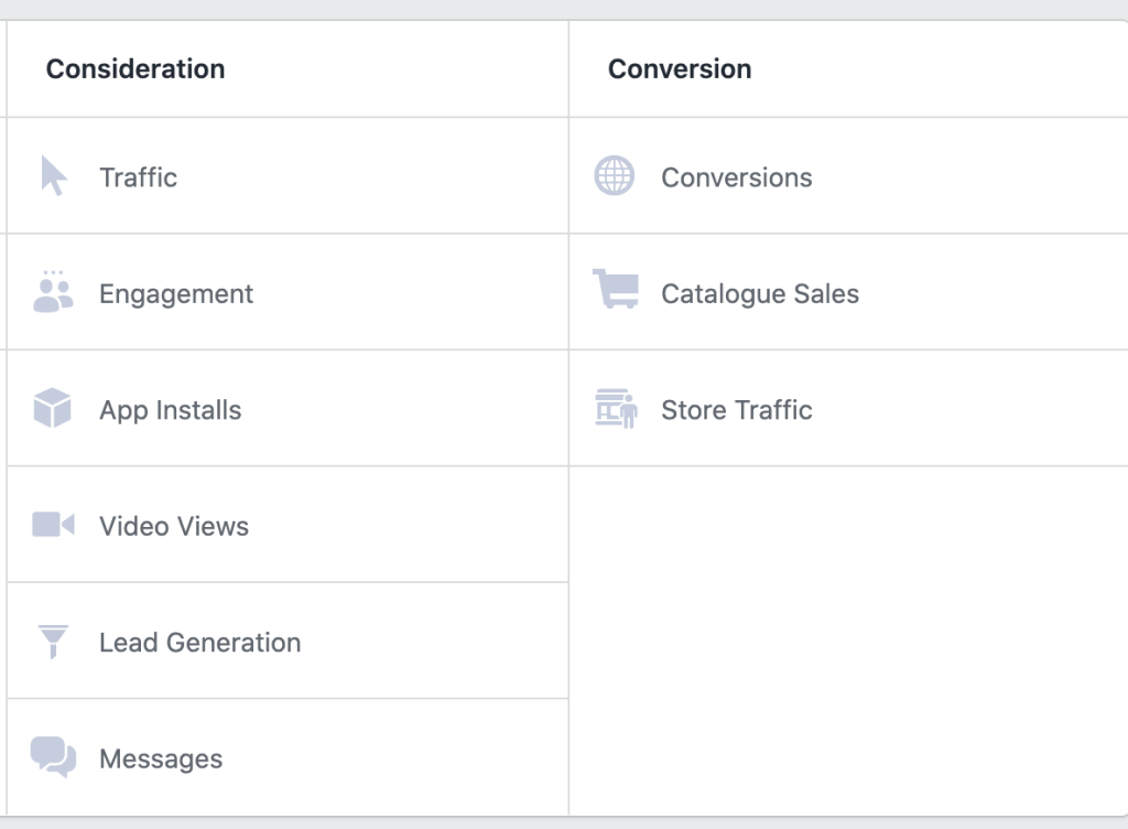 Sales – Drive sales online, in app, by phone, or in store (“conversions” in FB)